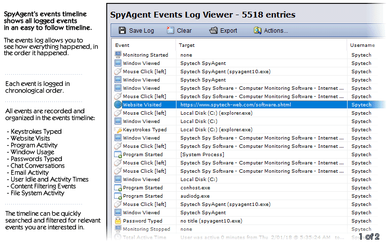SpyAgent's logging capabilities are unmatched. SpyAgent can